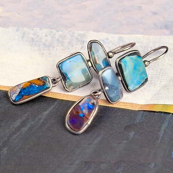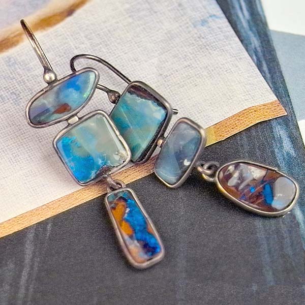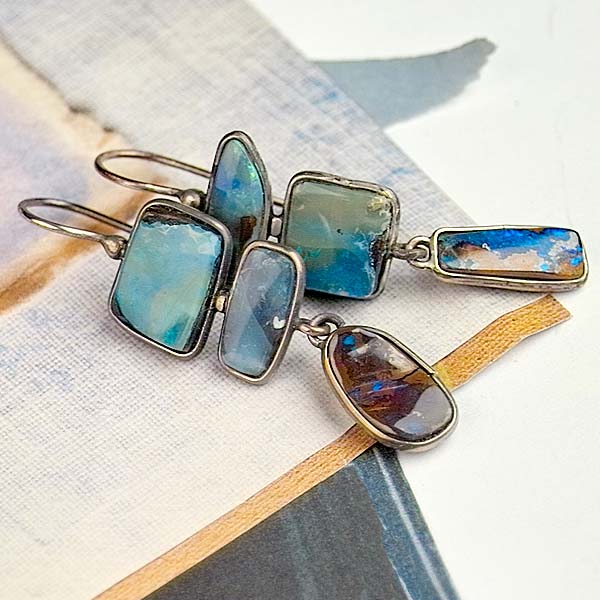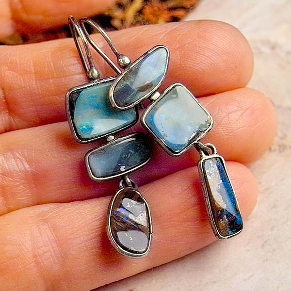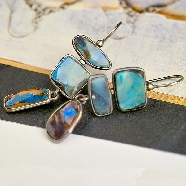 Boulder opal continues to be one of my favorite gemstones. Each piece is unique and each piece is beautiful. The coloration is fascinating and any added flash is magic! And these earrings have both! Each of the 6 pieces have a custom made sterling bezel. These earrings are fantastic!