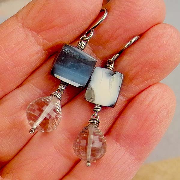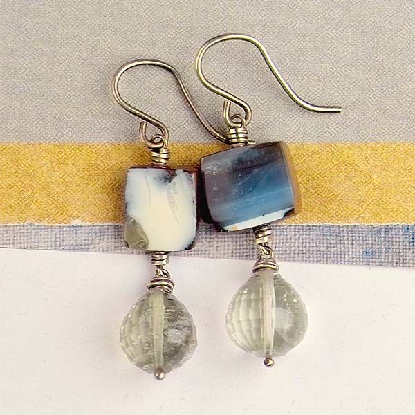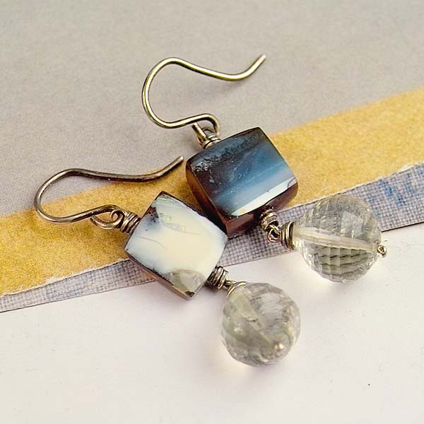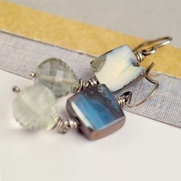 Boulder opals are beautiful. Each piece is unique in coloration. The back is always ironstone, and the faces are always pretty! I paired these with green amethyst drops. These are one-of-a-kind gorgeous!